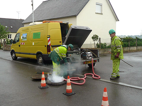 Traçage de réseau pour déterminer les branchements, test fumée et au colorant, mesure de débit et recherche des eaux parasitaires.