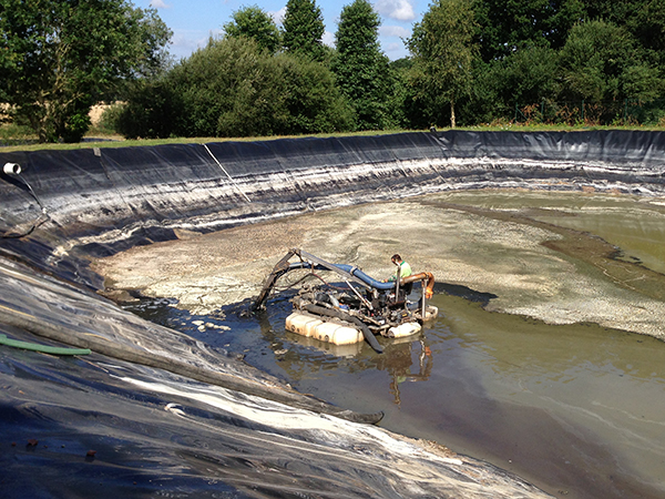 Nous intervenons pour le dragage des bassins et ouvrages divers où la boue s’est accumulée. Notre barge amphibie, nous permet de rouler comme de flotter, ainsi nous ne dégradons pas le fond des bassins.